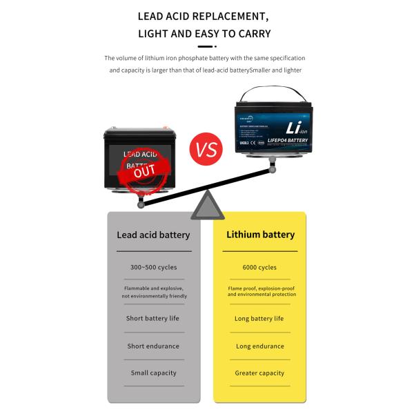 Lighter weight, larger capacity, more environmentally friendly than lead-acid batteries